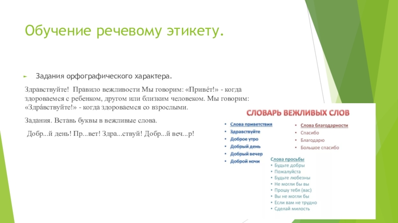 Добр...й день! Пр...вет! Здра...ствуй! Добр...й веч...р!