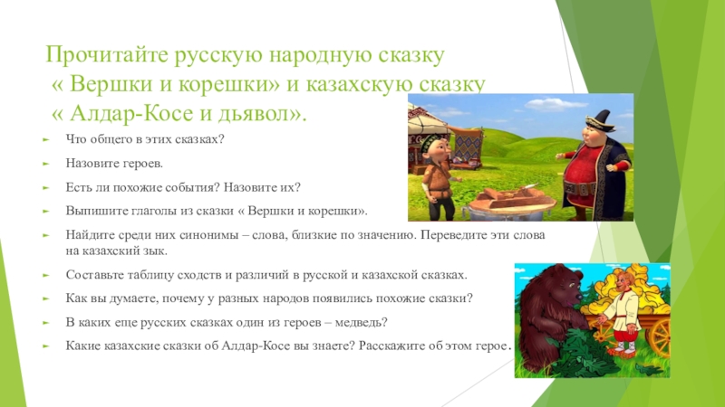 Составьте таблицу сходств и различий в русской и казахской сказках.