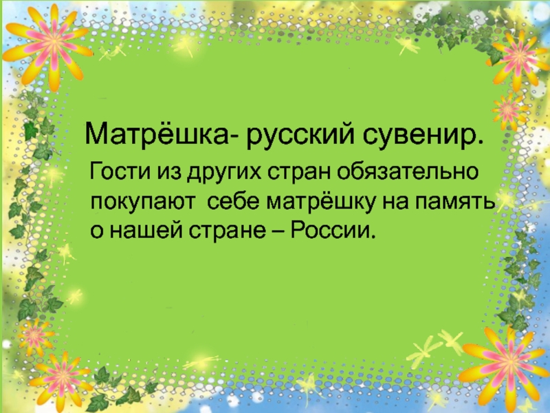 Слайд 27 Матрёшка- русский сувенир.