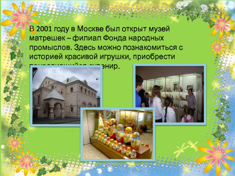 Слайд 29В 2001 году в Москве был открыт музей матрешек – филиал