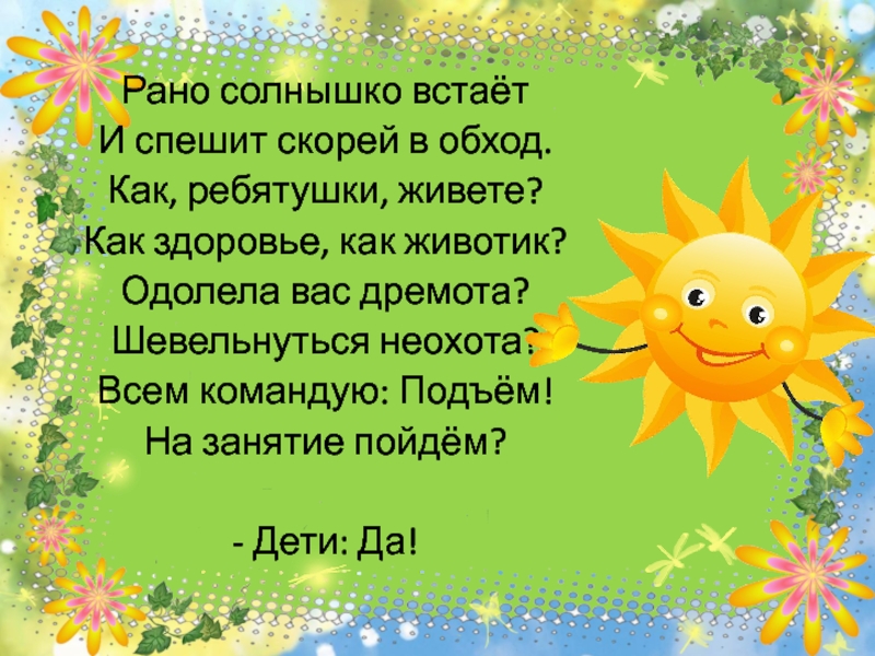 Слайд 4Рано солнышко встаёт