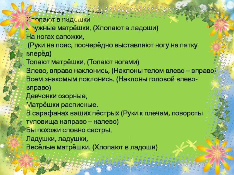 Дружные матрёшки. (Хлопают