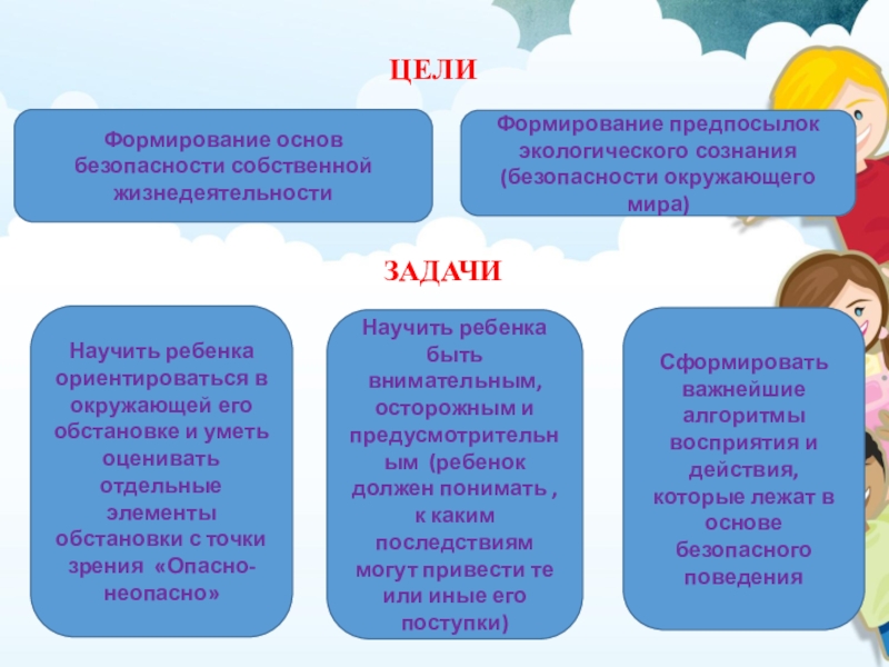 Сформировать важнейшие алгоритмы восприятия и действия, которые лежат в основе безопасного поведения