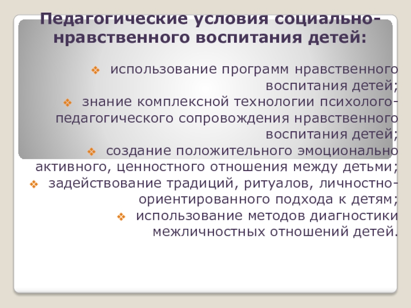 Социальное воспитание – процесс создания условий, способствующих вхождению ребенка в мир культуры, традиций, человеческих отношений