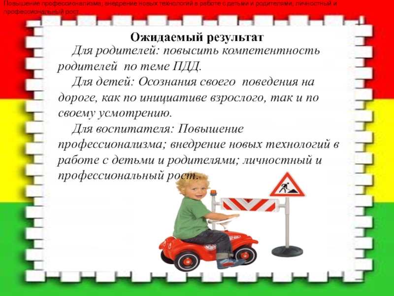 Повышение профессионализма; внедрение новых технологий в работе с детьми и родителями; личностный и профессиональный рост.