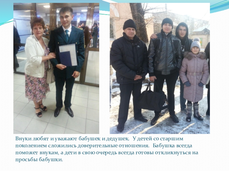 Слайд 34Внуки любят и уважают бабушек и дедушек. У детей со старшим