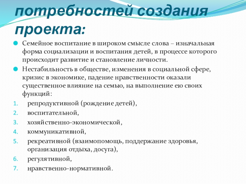 Нестабильность в обществе, изменения в социальной сфере, кризис в экономике, падение нравственности оказали существенное влияние на семью, на выполнение ею своих функций: