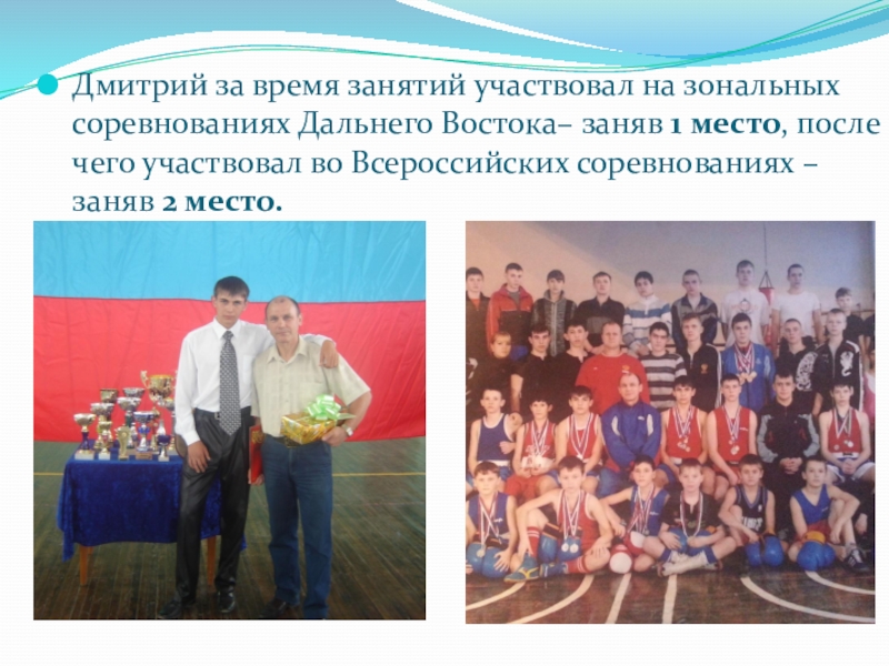 Слайд 23Дмитрий за время занятий участвовал на зональных соревнованиях Дальнего Востока– заняв