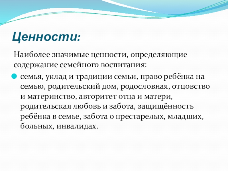 Наиболее значимые ценности, определяющие содержание семейного воспитания: