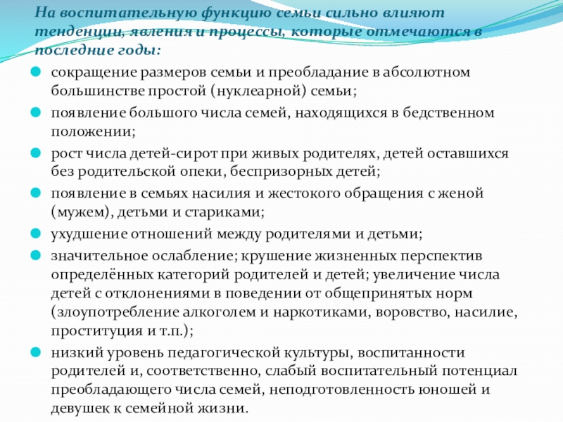 Слайд 5На воспитательную функцию семьи сильно влияют тенденции, явления и процессы, которые