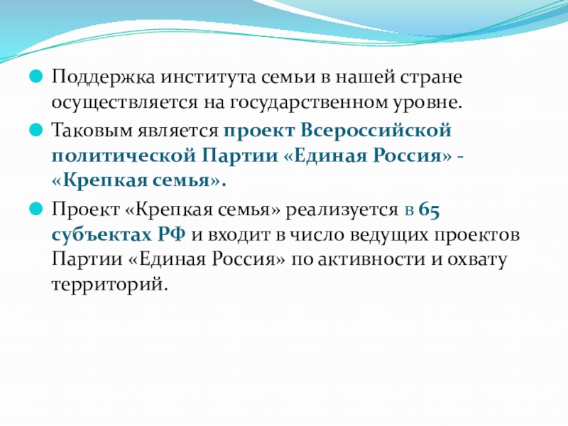 проект Всероссийской политической Партии «Единая Россия» - «Крепкая семья».
