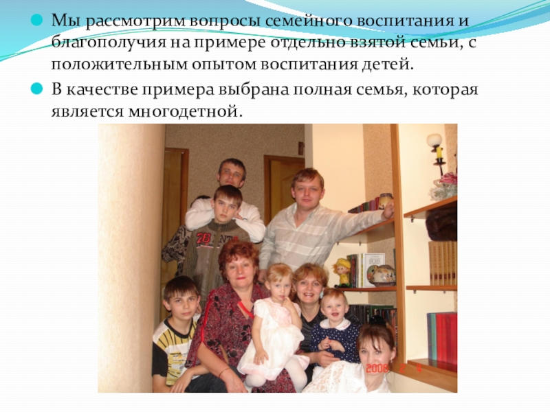 Слайд 12Мы рассмотрим вопросы семейного воспитания и благополучия на примере отдельно взятой