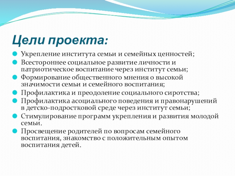 Формирование общественного мнения о высокой значимости семьи и семейного воспитания;