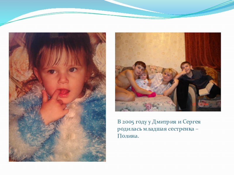 Слайд 18В 2005 году у Дмитрия и Сергея родилась младшая сестренка –