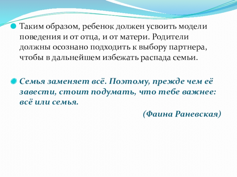 Слайд 41Таким образом, ребенок должен усвоить модели поведения и от отца, и