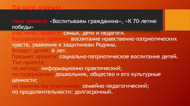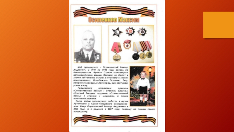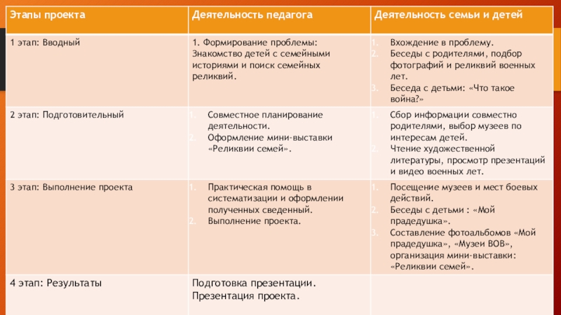 Этот проект возник с целью расширить представление у детей о легендарном прошлом нашей Родины и о героях своих семей.