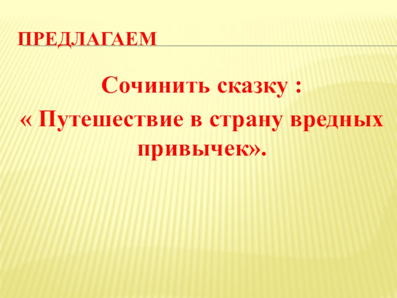 ПРЕДЛАГАЕМСочинить сказку : « Путешествие в страну вредных привычек».