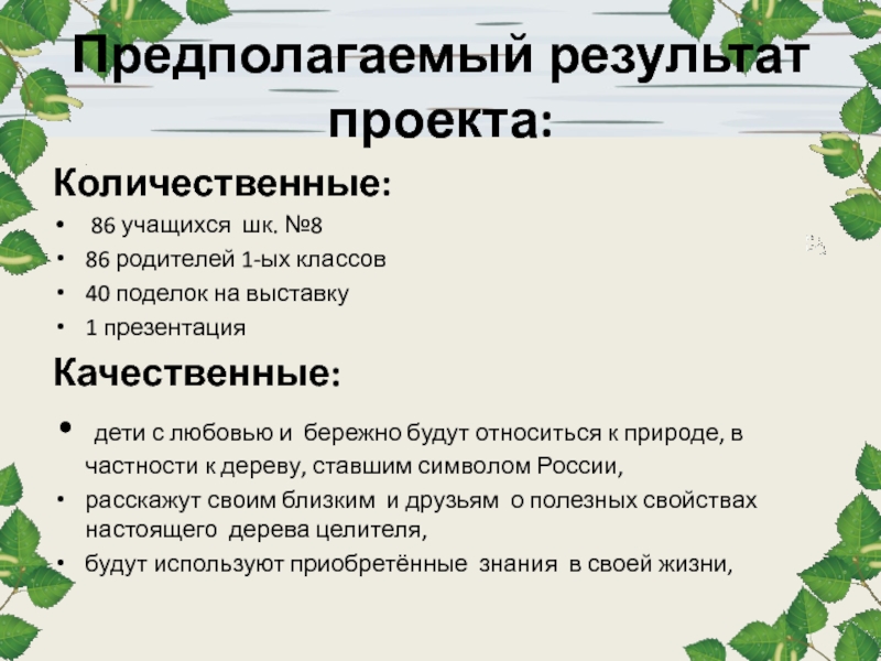 Презентация, доклад на тему Социальный проект Люблю берёзку русскую!