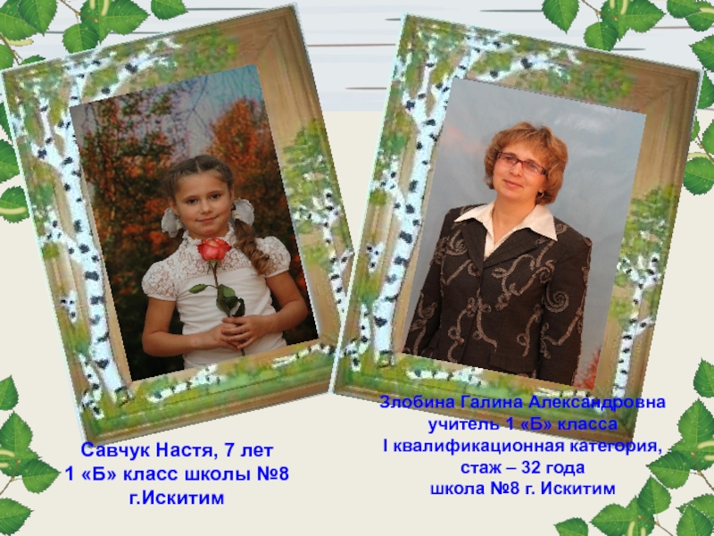 Савчук Настя, 7 лет 1 «Б» класс школы №8 г.ИскитимЗлобина Галина Александровна учитель 1 «Б» класса I квалификационная категория, стаж – 32 года школа №8 г. Искитим