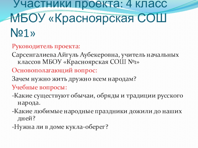 Слайд 3 Участники проекта: 4 класс МБОУ «Красноярская СОШ №1»