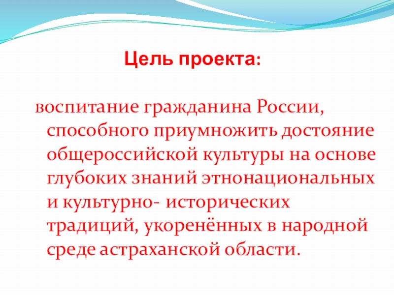 воспитание гражданина России, способного приумножить достояние общероссийской культуры на основе