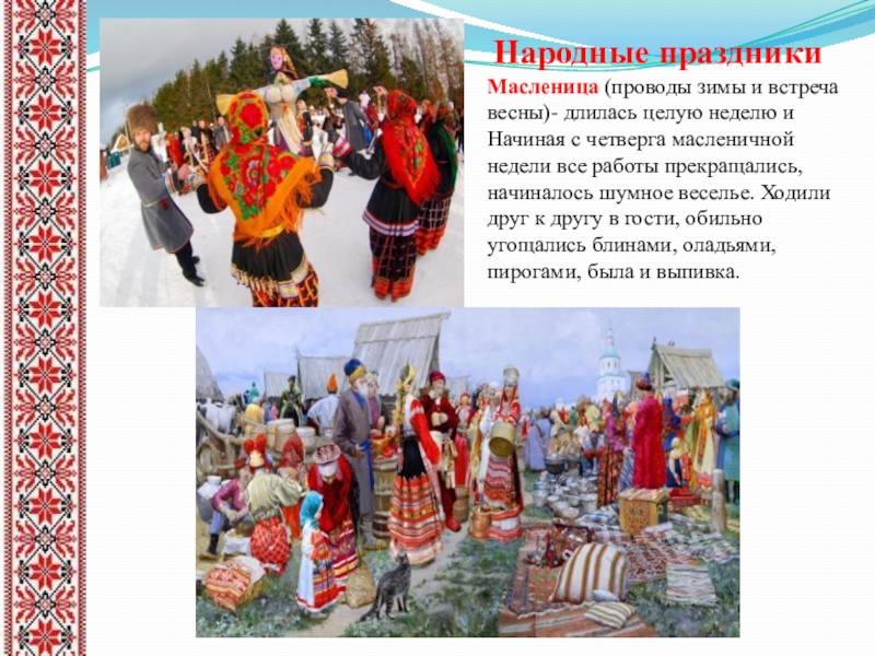 Масленица (проводы зимы и встреча весны)- длилась целую неделю