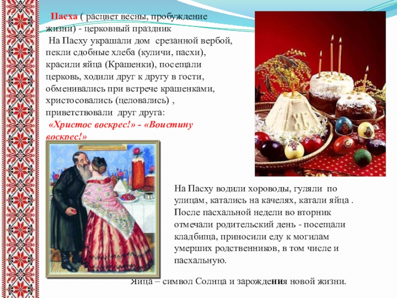 Слайд 9 Пасха ( расцвет весны, пробуждение жизни) - церковный праздник