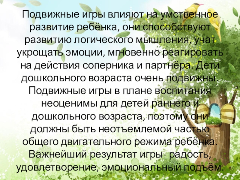 Слайд 5Подвижные игры влияют на умственное развитие ребёнка, они способствуют развитию логического