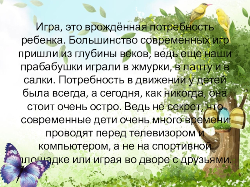 Слайд 3Игра, это врождённая потребность ребенка. Большинство современных игр пришли из глубины