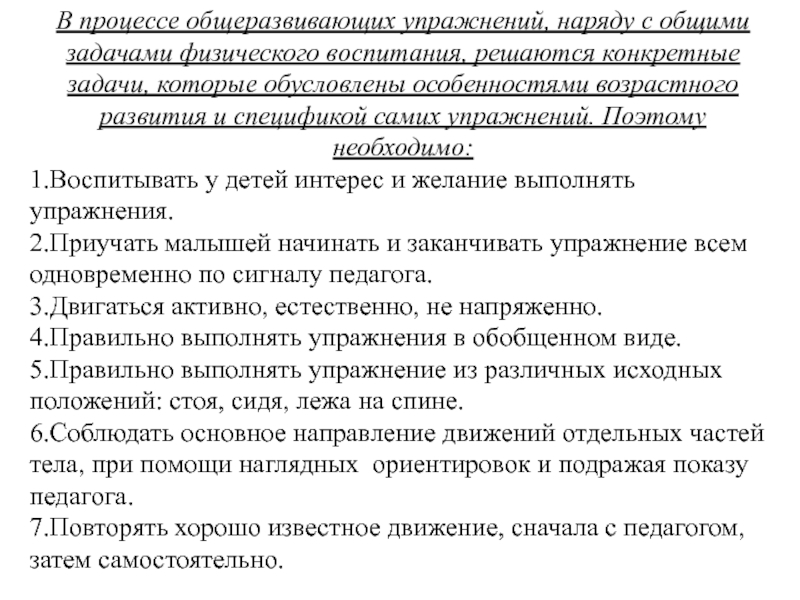 Слайд 11В процессе общеразвивающих упражнений, наряду с общими задачами физического воспитания, решаются