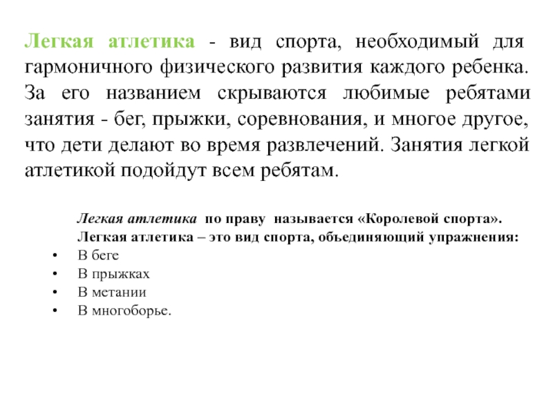 Слайд 21Легкая атлетика - вид спорта, необходимый для гармоничного физического развития каждого