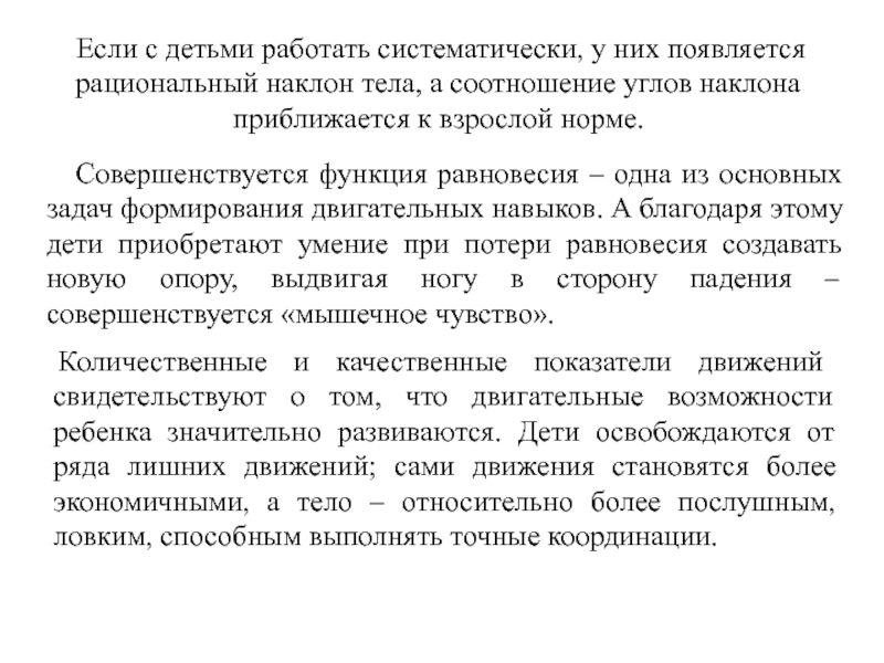 Слайд 27 Если с детьми работать систематически, у них появляется рациональный наклон тела,