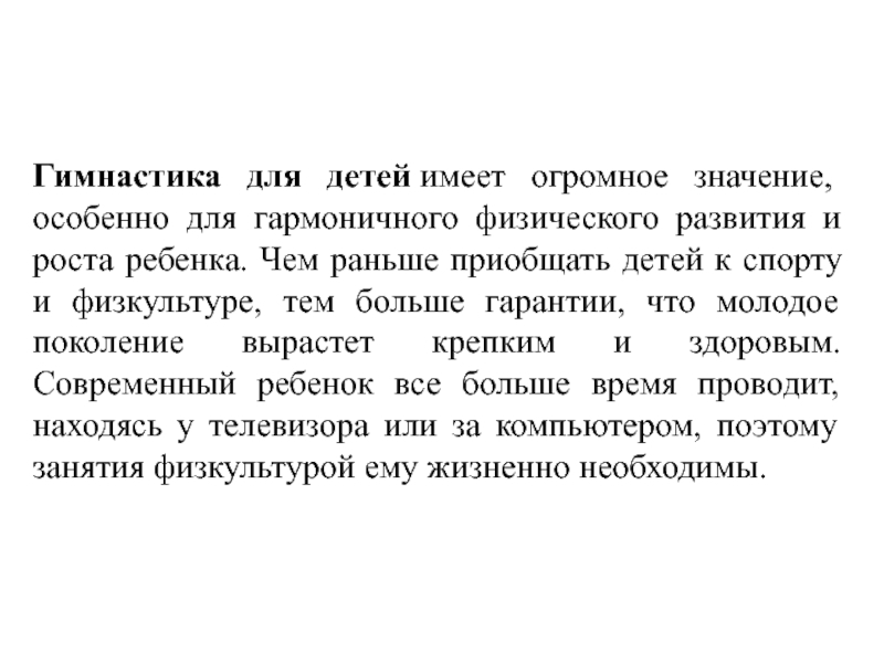 Слайд 14Гимнастика для детей имеет огромное значение, особенно для гармоничного физического развития и