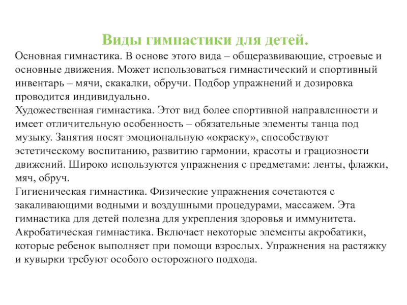 Слайд 16Виды гимнастики для детей.