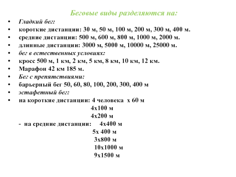 Слайд 22Беговые виды разделяются на: