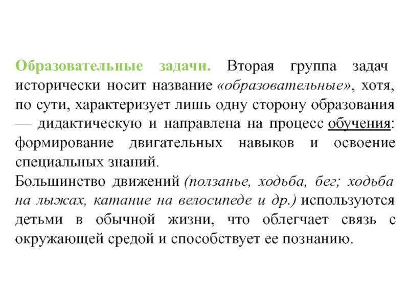 Слайд 6Образовательные задачи. Вторая группа задач исторически носит название «образовательные», хотя, по сути,
