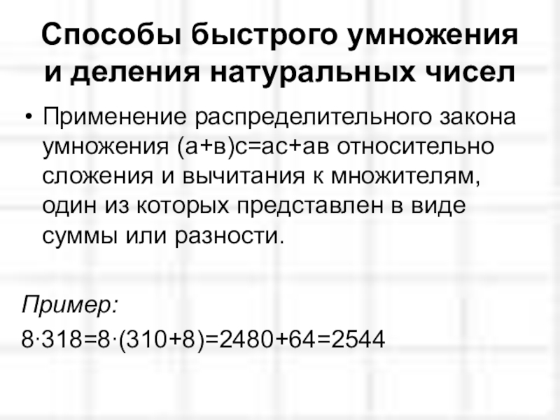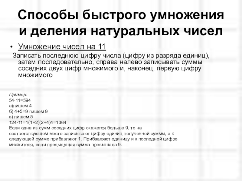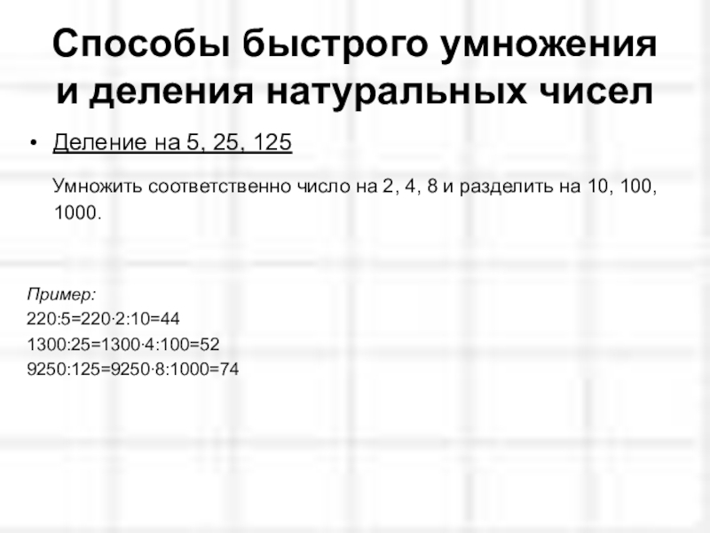 Слайд 24Способы быстрого умножения и деления натуральных чисел