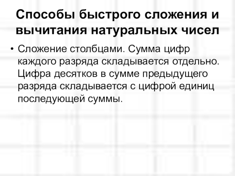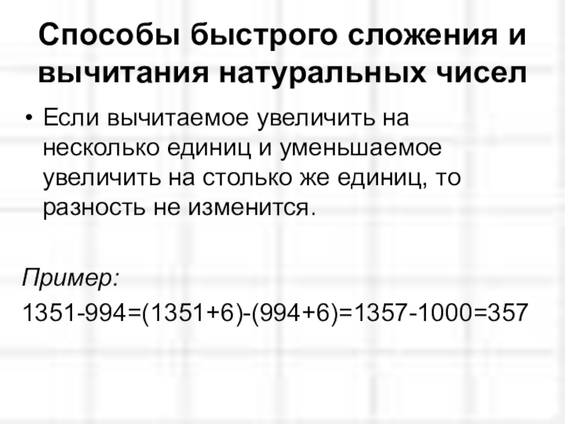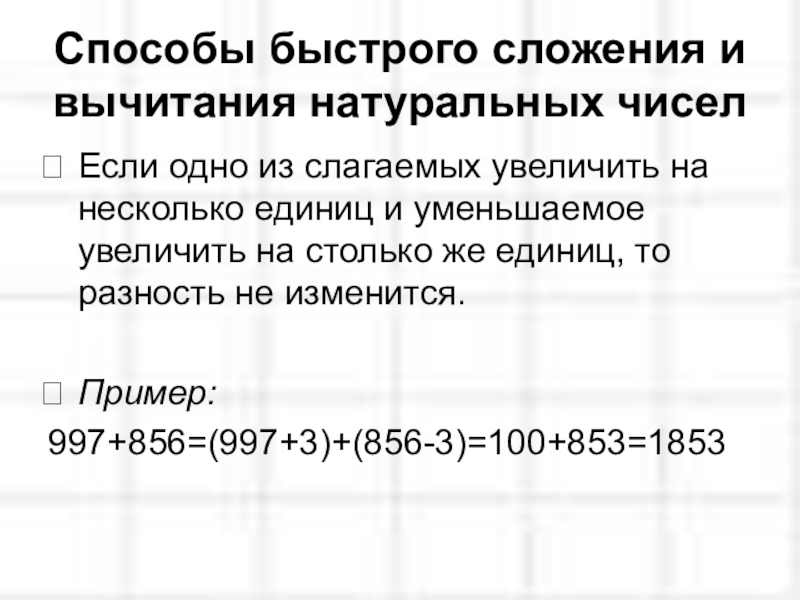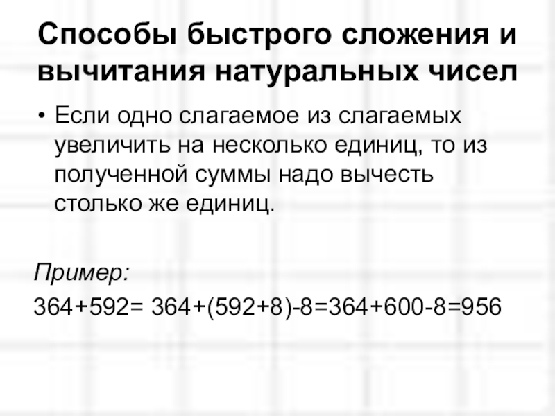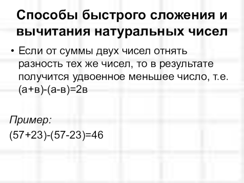 Слайд 20Способы быстрого сложения и вычитания натуральных чисел