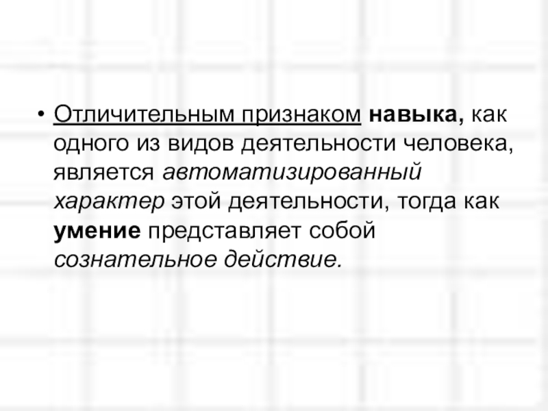 Слайд 5Отличительным признаком навыка, как одного из видов деятельности человека, является автоматизированный
