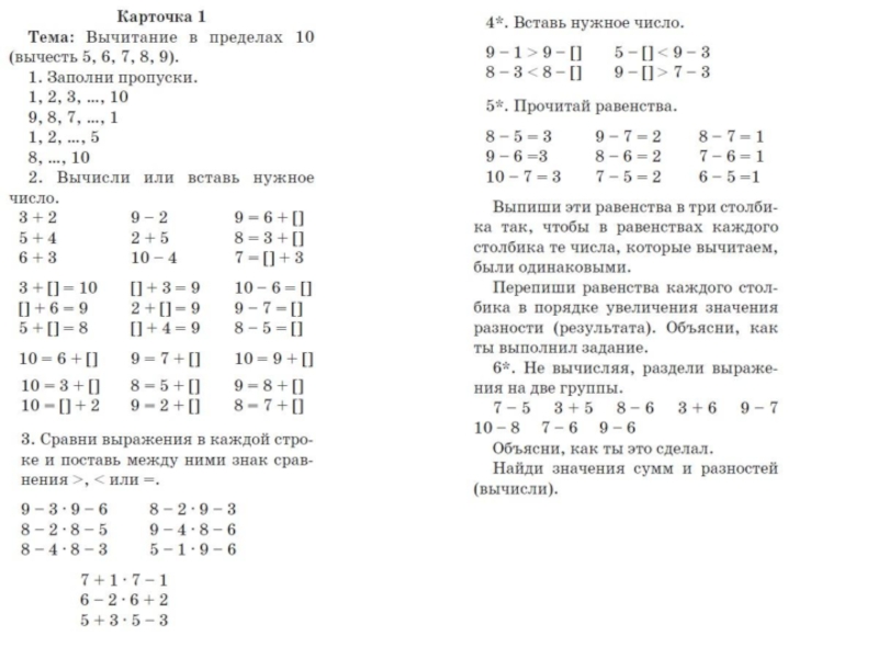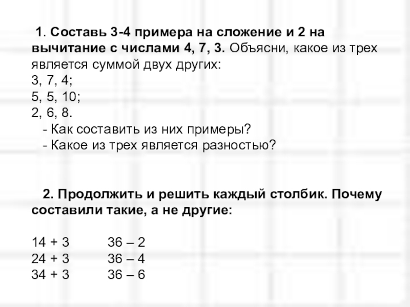Слайд 12 1. Составь 3-4 примера на сложение и 2 на вычитание