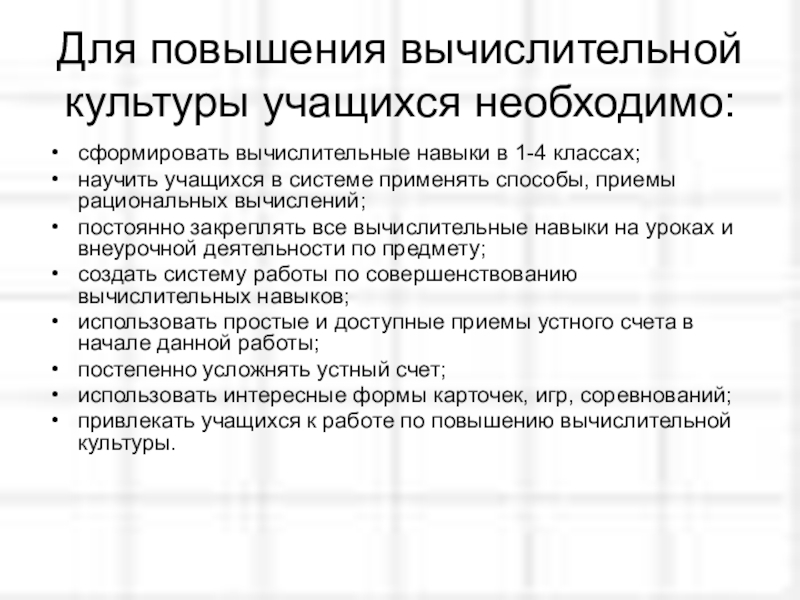 Слайд 51Для повышения вычислительной культуры учащихся необходимо: