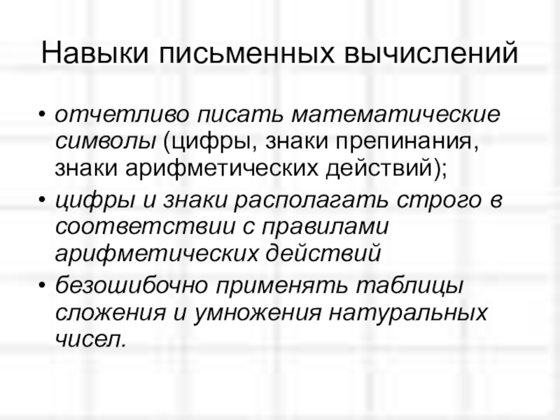 отчетливо писать математические символы (цифры, знаки препинания, знаки арифметических