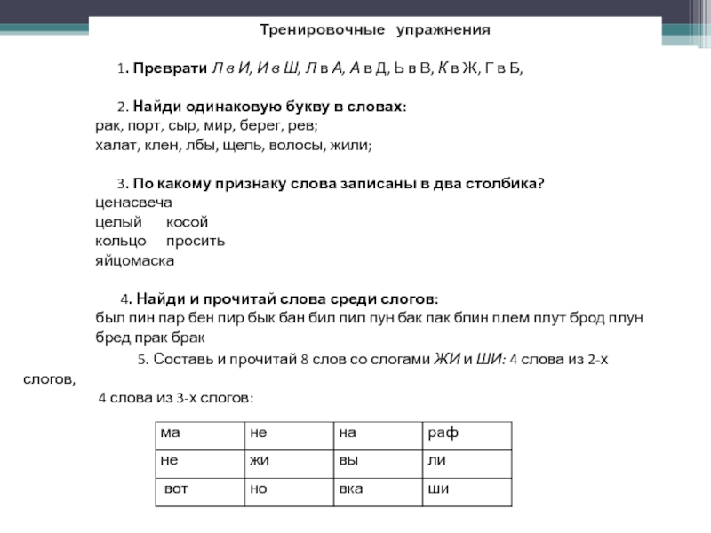 5. Составь и прочитай 8 слов со слогами ЖИ и ШИ: 4 слова из 2-х слогов,