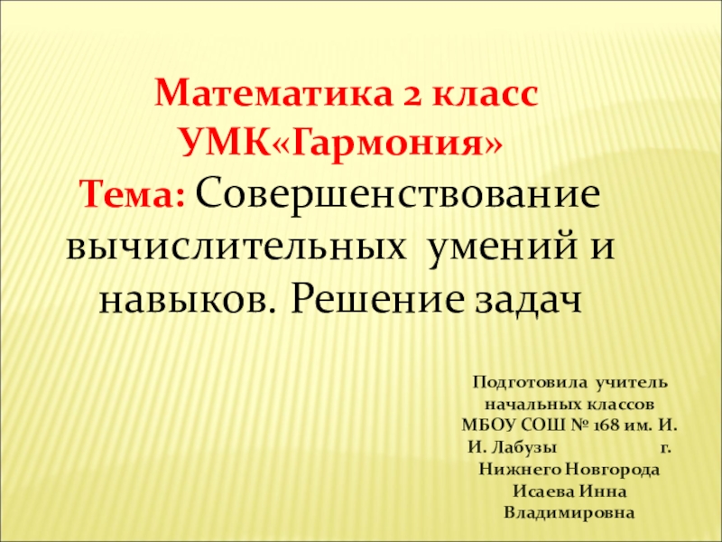 Подготовила учитель начальных классов МБОУ СОШ № 168 им. И.И. Лабузы г. Нижнего Новгорода Исаева Инна Владимировна