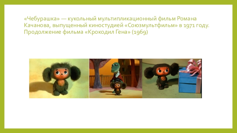 Слайд 3«Чебурашка» — кукольный мультипликационный фильм Романа Качанова, выпущенный киностудией «Союзмультфильм» в