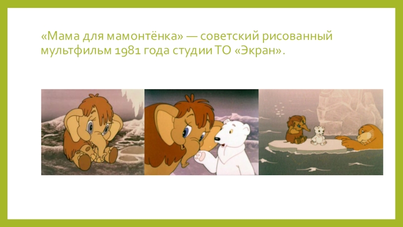 Слайд 4«Мама для мамонтёнка» — советский рисованный мультфильм 1981 года студии ТО