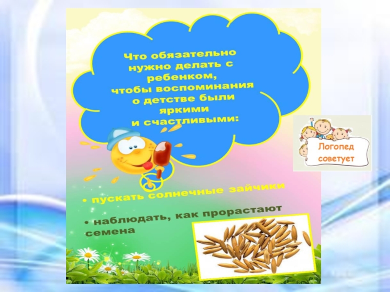 Презентация, доклад на тему Советы логопеда Что делать родителям, чтобы ребенку запомнилось детство