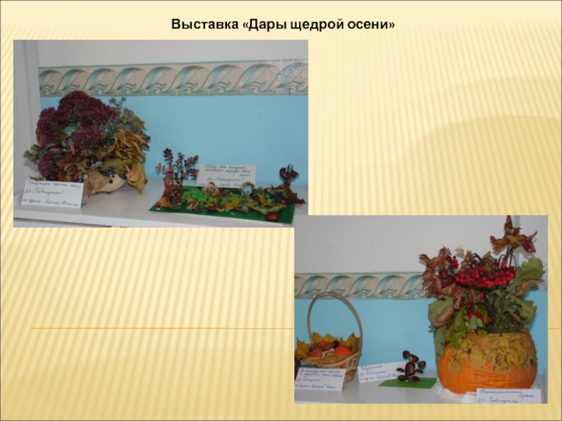 Родители с детьми активно участвуют в выставках «Дары щедрой осени», «Новогодние украшения», «Удивительный подарок» (8 марта, День матери).