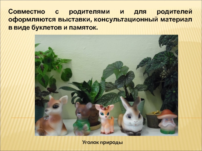Слайд 9Совместно с родителями и для родителей оформляются выставки, консультационный материал в