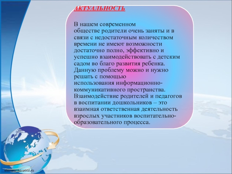 Это сайт презентаций, где можно хранить и обмениваться своими презентациями, докладами, проектами, шаблонами в формате PowerPoint с другими пользователями. Мы помогаем школьникам, студентам, учителям, преподавателям хранить и обмениваться учебными материалами.